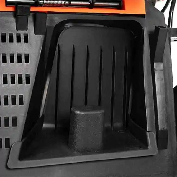 • Kosilica nudi tri funkcije rada – sakupljanje u korpu, malčiranje i izbacivanje trave pozadi – čime se prilagođava različitim uslovima i potrebama korisnika. Poseban sistem „češljanja“ podiže vlati pre sečenja, obezbeđujući ravnomerniji i precizniji rez.