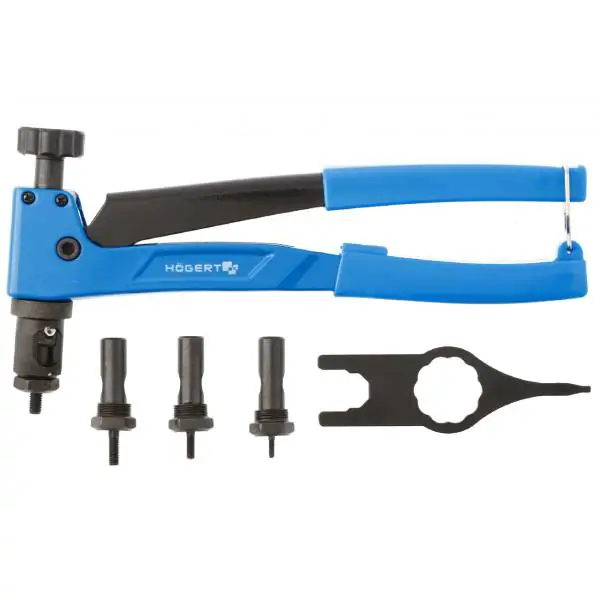 • Ovaj ručni alat za nitovanje namenjen je za brzo, precizno i sigurno postavljanje zakivnih matica u čelične i aluminijumske materijale. Idealan je za široku primenu u auto-servisima, montažnim i instalaterskim radovima, kao i u radionici. Telo alata izrađeno je od kvalitetnog aluminijuma, što obezbeđuje malu težinu i dug vek trajanja uz visoku otpornost na opterećenja. U kompletu dolaze četiri nastavka za zakivne matice veličina M3, M4, M5 i M6, što omogućava veliku fleksibilnost u radu. Ergonomske ručke sa gumenom oblogom pružaju siguran i udoban hvat, čak i pri dužoj upotrebi. Praktična blokada ručki olakšava skladištenje i transport alata. Pouzdan, funkcionalan i jednostavan za korišćenje, ovaj alat je neizostavan deo svake profesionalne opreme.
