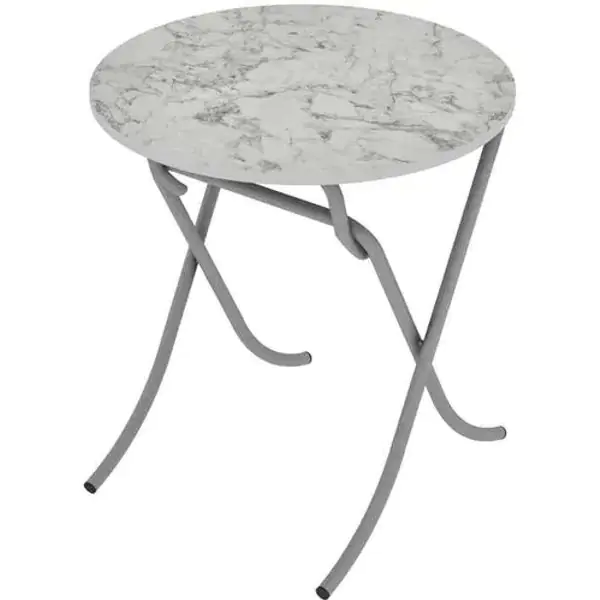 AL10037 BM višenamenski sto prečnika 70 cm, u boji imitacije belog mermera, unosi dozu luksuza i elegancije u svaki prostor. Sa visinom od 75 cm, savršen je za trpezariju, dnevni boravak ili terasu. Metalne sklopive noge omogućavaju lako sklapanje i odlaganje, što ga čini praktičnim za male prostore ili povremenu upotrebu.