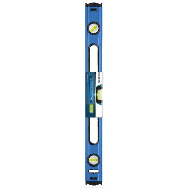 • Ova aluminijumska libela dizajnirana je za precizno određivanje nivoa i pravca ravni. Preporučuje se za opšte građevinske, renovatorske, vodoinstalaterske i stolarske radove. Ima frezanu bočnu površinu za povećanu tačnost merenja, sa preciznošću od +/- 0,5 mm na 1 m. Opremljena je sa tri libele postavljene za uglove 0°, 45° i 90°. Zaštitne kapice na krajevima apsorbuju udarce, dok čvrst okvir od aluminijuma debljine 1,3 mm pruža izdržljivost i otpornost na koroziju. Libele su postavljene tako da omogućavaju vertikalni pregled, čime se olakšava precizno i pouzdano merenje u svim radnim situacijama.