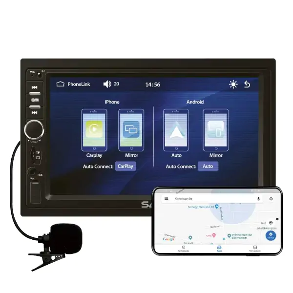 • SAL VBX910 auto radio i multimedijalni plejer predstavlja savršen izbor za sve koji žele da svako putovanje učine zabavnijim, udobnijim i bezbednijim, zahvaljujući modernim funkcijama i jednostavnom rukovanju. Sa 7,0-inčnim (18 cm) ekranom osetljivim na dodir, intuitivna kontrola svih funkcija je uvek na dohvat ruke, dok podrška za iOS CarPlay i Android Auto omogućava besprekorno povezivanje pametnog telefona i direktan pristup aplikacijama, navigaciji, muzici i pozivima. Kompaktno kućište idealno se uklapa u kontrolnu tablu većine automobila, pružajući moderan i funkcionalan izgled. Uređaj podržava reprodukciju različitih medija – AM/FM RDS radio sa 30 memorijskih mesta, muziku, fotografije i video zapise putem USB i microSD priključaka. Ugrađena Bluetooth funkcija omogućava bezbedno upravljanje pozivima bez dodirivanja telefona, dok ugrađeni i eksterni mikrofon na kopču obezbeđuju jasan kvalitet zvuka. Funkcija kamere za vožnju unazad olakšava parkiranje i povećava bezbednost, a USB punjenje održava mobilne uređaje stalno spremnim za upotrebu. Opcija promenljivog pozadinskog osvetljenja dugmadi i zadnjeg monitora pruža dodatnu udobnost, dok mogućnost kontrole sa volana doprinosi bezbednijoj vožnji. iOS i Android preslikavanje displeja (Mirror Link) omogućava korišćenje aplikacija sa telefona direktno na ekranu radija, uz povezivanje putem USB kabla. U paketu se isporučuju daljinski upravljač, eksterni mikrofon i kompletan pribor za montažu.