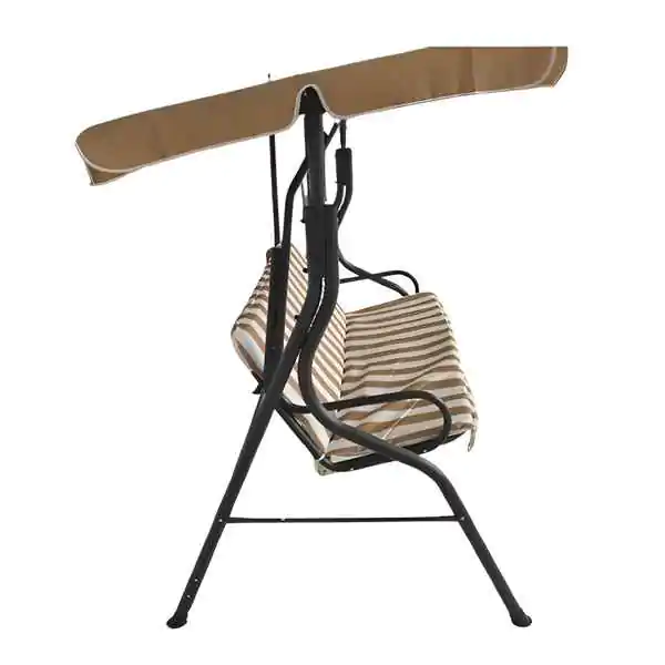 • Konstrukcija je izrađena od kvalitetnog čelika sa plastificiranom završnom obradom, što obezbeđuje otpornost na koroziju, ogrebotine i spoljašnje uticaje. Stabilne noge prečnika Ø38 mm garantuju sigurnost i čvrst oslonac tokom korišćenja. Sedište je napravljeno od izdržljivog 160G poliestera, koji je prijatan na dodir, lak za održavanje i otporan na habanje. Tenda pruža zaštitu od sunca, omogućavajući prijatan boravak napolju čak i tokom toplih letnjih dana.