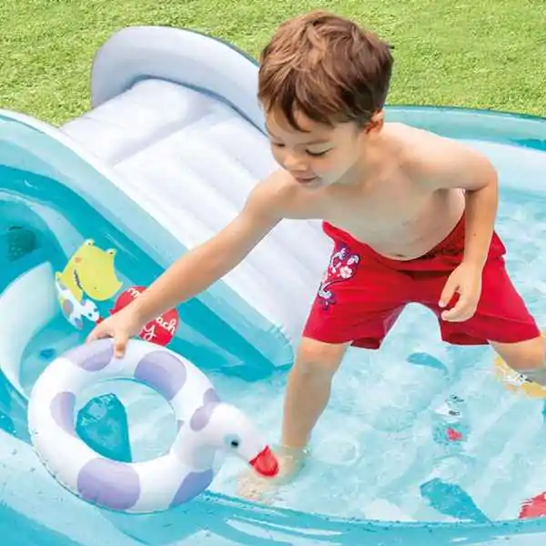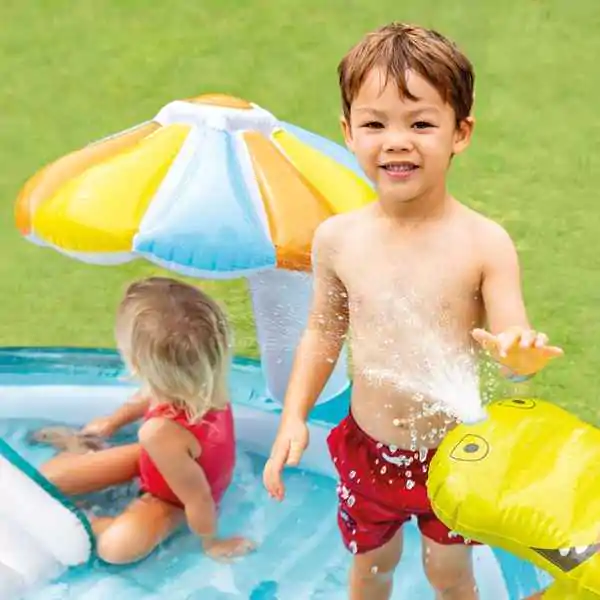 • Intex Recreation Corp. Igraonica Aligator – dečiji bazen na naduvavanje sa toboganom i prskalicom