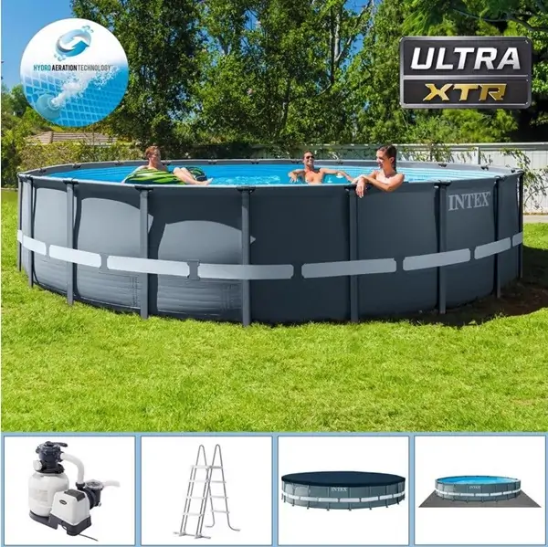 • Intex Ultra XTR bazen sa peščanom pumpom predstavlja vrhunski izbor za one koji žele spojiti robusnost, eleganciju i praktičnost u svom dvorištu. Sa metalnim ramom i inovativnom čeličnom konstrukcijom, ovaj okrugli bazen pruža savršen prostor za nezaboravne trenutke potpunog opuštanja.