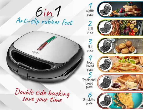 CAMRY CR3057 multi-funkcionalni toster 6u1 1200WMultifunkcionalni uređaj-toster CR 3057 zamenjuje do 6 uređaja. Zbog velike snage od 1200W, uređaj omo ...