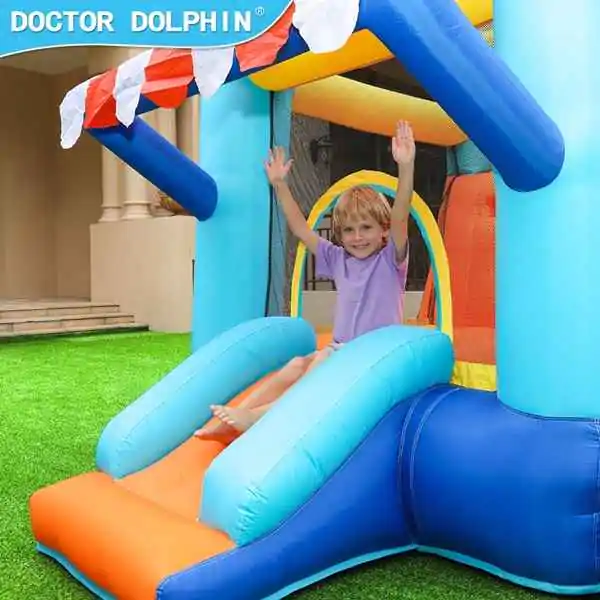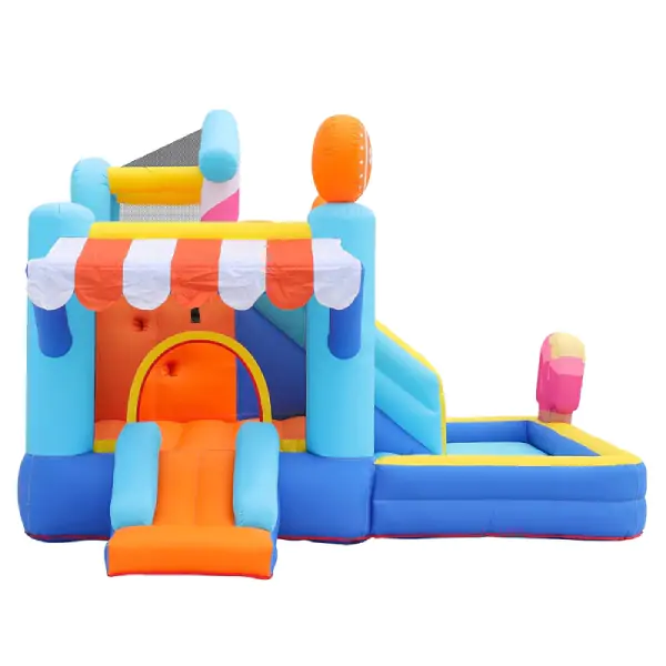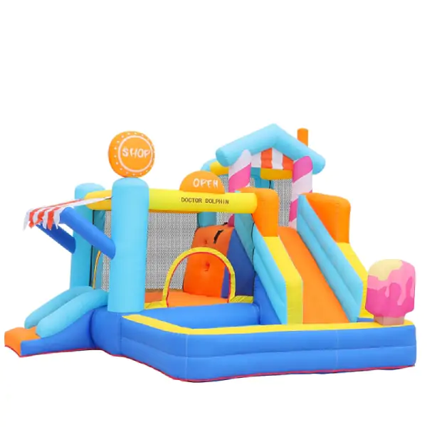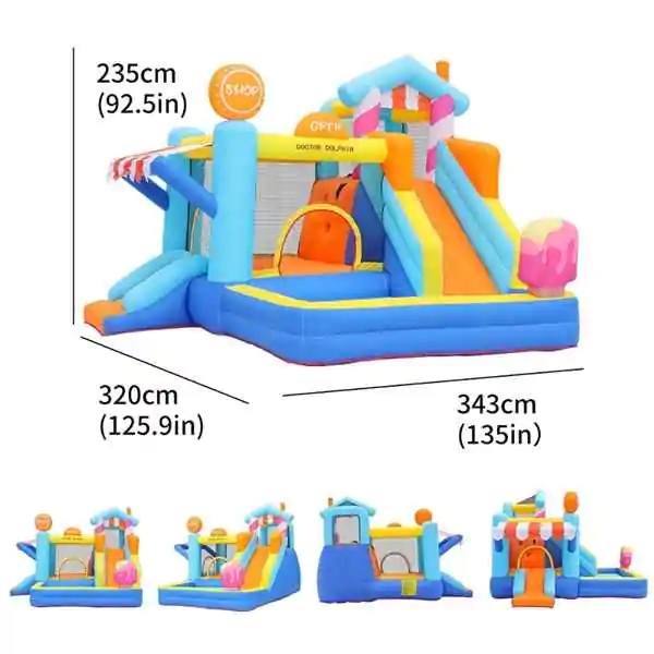 • Dečija naduvavajuća igraonica „Slatka Kuća & Prodavnica“ osmišljena je da na prvi pogled osvoji dečija srca, a roditeljima i organizatorima pruži sigurnost, kvalitet i bezbrižnost. Razigran dizajn u obliku slatke kuće i prodavnice stvara bajkovitu atmosferu u kojoj se deca rado igraju, smeju i provode nezaboravne trenutke. Bogat sadržaj omogućava skakanje, penjanje, spuštanje niz tobogan, igru u bazenu sa lopticama i košarkaški obruč, čime se podstiče razvoj motorike, mašte i socijalnih veština. Zahvaljujući kapacitetu do troje dece istovremeno, izdržljivoj konstrukciji od najkvalitetnije Oxford tkanine 420D + 840D i brzom postavljanju uz električnu pumpu sa konstantnim protokom vazduha, ova igraonica je idealan izbor za dečije igraonice, rođendane, proslave, manifestacije i porodična okupljanja. U pakovanju se isporučuje sa kompletom za pričvršćivanje, setom za popravku, uputstvom i torbom za skladištenje – sve što je potrebno za bezbrižnu zabavu.