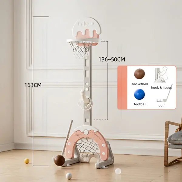 • Podesivi koš koji raste zajedno sa decom, od 50 do 136 cm visine obruča (ukupna visina 163 cm), omogućava dinamične i izazovne košarkaške igre, dok gol jednostavne montaže pruža idealan prostor za vežbanje preciznosti i timskog duha. Golf dodatak nudi mirnije trenutke uz razvoj koncentracije i fine motorike, a obruč za bacanje unosi dodatnu radost, vežbanje spretnosti i oduševljenje pri svakom pogotku. Set je izrađen od visokokvalitetnog i potpuno bezbednog HDPE materijala koji se koristi u prehrambenoj industriji, što garantuje sigurnost, dugotrajnost i otpornost, dok stabilnu osnovu možete dodatno učvrstiti vodom ili peskom.
