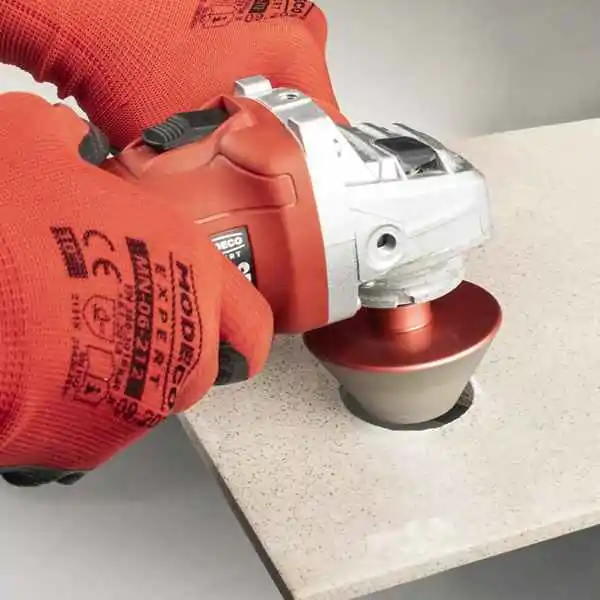 • Dijamantski razvrtac stožastog oblika dimenzija 35–75 × 45 mm namenjen je za povećavanje, poravnavanje i oblikovanje postojećih otvora u keramici, granitu, mermeru, porculanu i drugim tvrdim materijalima. Zahvaljujući M14 navoju, kompatibilan je sa većinom ugaonih brusilica, što omogućava jednostavnu i brzu montažu bez potrebe za dodatnim adapterima.
