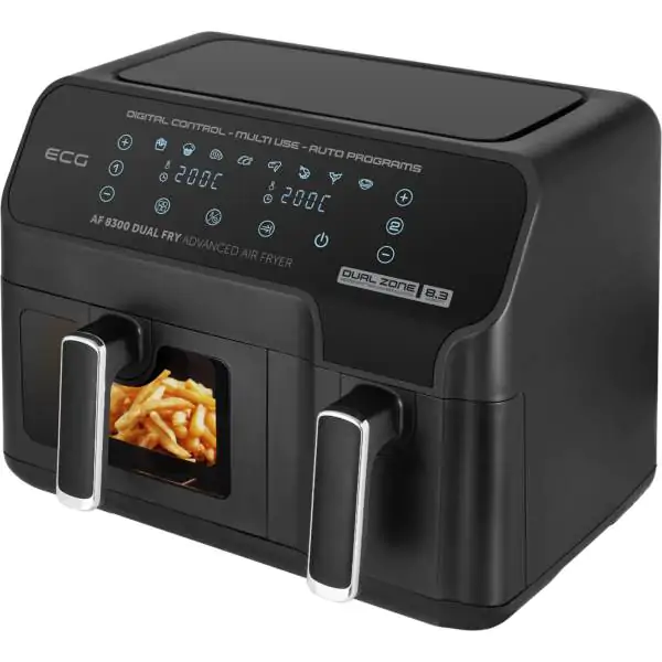 • Sa ulaznom snagom od 2700 W, ECG AF 8300 Dual Fry je odličan izbor za sve koji žele brzo, efikasno i zdravo pripremanje hrane