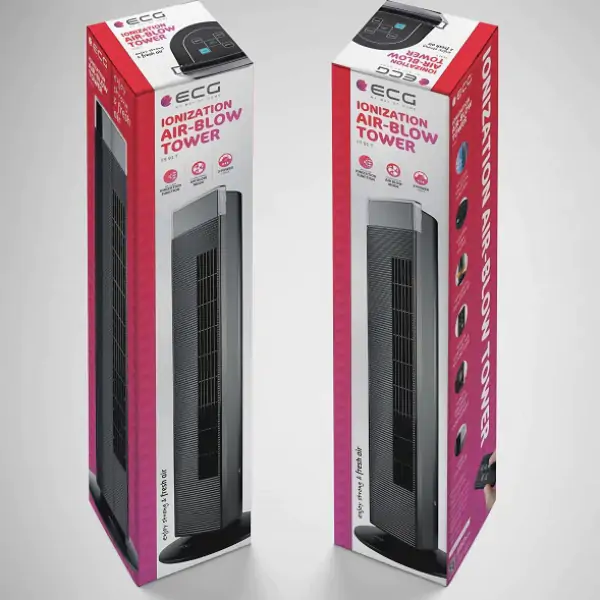 • ECG vetrokaz je elegantan i moćan ventilator sa postoljem (toranj/pedestal) koji kombinuje naprednu tehnologiju prečišćavanja vazduha sa izuzetno tihim radom i inteligentnim režimima ventilacije za vrhunski komfor u vašem prostoru. Zahvaljujući funkciji jonizacije koja je aktivna u svim režimima rada, ovaj uređaj ne samo da rashlađuje prostoriju već je i efikasno osvežava i pročišćava, stvarajući prijatniju i zdraviju atmosferu. Birajte između 3 nivoa intenziteta i 3 programska režima rada: letnji (intenzivna ventilacija u ciklusima), normalni (konstantna brzina) i noćni (postepena promena brzine na svakih pola sata), prilagođavajući vazduh svojim potrebama. Oscilacija od 80° i mogućnost podešavanja nagiba omogućavaju usmeravanje vazduha tačno tamo gde je potrebno, dok praktičan daljinski upravljač i tajmer do 8 sati (1/2/4/8h) pružaju potpunu kontrolu na daljinu. Sa tihim radom bez vibracija, modernom crnom bojom i kompaktnim dimenzijama, ECG vetrokaz je idealan izbor za spavaću sobu, dnevni boravak ili kancelariju.
