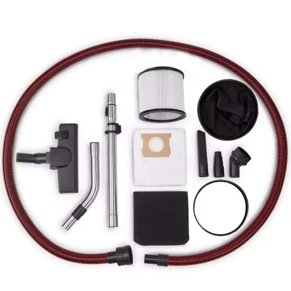 • Uređaj se isporučuje sa bogatim setom dodataka, uključujući veliku kombinovanu mlaznicu sa točkićima za tvrde podove i tepihe, mlaznicu za tapacirung, usku mlaznicu za pukotine, penasti filter za mokro usisavanje, HEPA naborani filter, filter kesu i izdržljivu netkanu kesu za suvo usisavanje. HEPA filter zadržava i najsitnije čestice iz vazduha, što je posebno pogodno za osobe osetljive na prašinu i alergene.