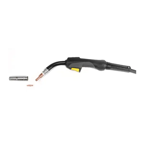 • ESAB Gorionik PSF 315 je vazdušno hlađeni MIG/MAG gorionik profesionalne klase, konstruisan za pouzdan i produktivan rad u različitim industrijskim uslovima. Sa nazivnom strujom zavarivanja od 315 A pri 60% radnog ciklusa, gorionik nese solidan kapacitet za zavarivanje srednje do debelih materijala, dok njegov sistem vazdušnog hlađenja održava optimalnu radnu temperaturu tokom tipičnih radnih ciklusa. Podržava prečnike žice od 0,8 do 1,2 mm, što ga čini idealnim za zavarivanje čelika i nerđajućeg čelika u mnogim proizvodnim i održavalačkim aplikacijama. Dužina kabla od 4 metra pruža dovoljnu pokretljivost za efikasno rukovanje u radionici. Ergonomski dizajn sa robusnom drškom, zglobnim spojem i opružnim osloncem poboljšava kontrolu tokom zavarivanja i smanjuje fizički napor, čineći rad udobnijim tokom dužih smena. Zahvaljujući standardnom Euro konektoru, gorionik se lako i brzo povezuje sa širokim spektrom ESAB aparata za zavarivanje, povećavajući njegovu svestranost i funkcionalnost u bilo kom radnom okruženju. Ovaj gorionik je izdržljiv, pouzdan i pravi izbor za profesionalce koji traže balans između performansi, udobnosti i dugovečnosti u svakodnevnom radu.