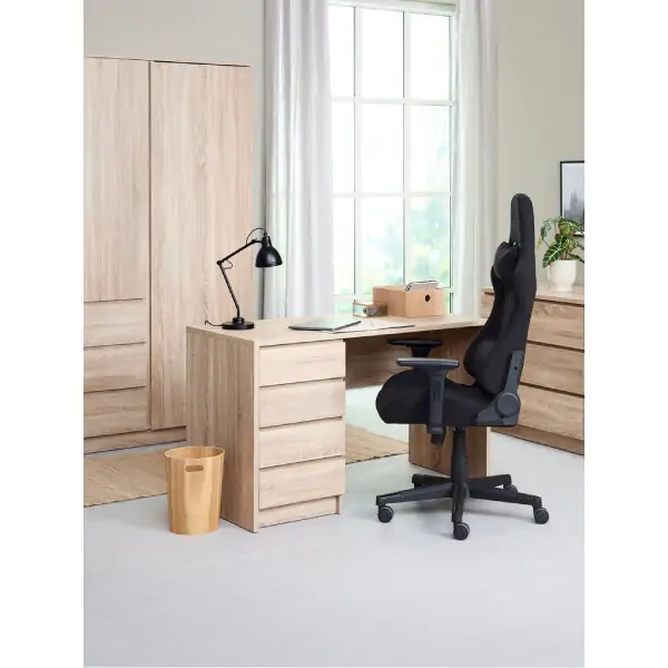 • NIBE gejmerska stolica u crnoj boji kombinuje podesivu udobnost, funkcionalnost i moderan dizajn, pružajući podršku tokom dugih sati igranja ili rada za računarom. Opremljena je jastucima za vrat i lumbalni deo leđa, 1D podesivim naslonima za ruke, podesivim naslonom i kliznim nagibnim mehanizmom sa zaključavanjem u različitim položajima. Visina sedišta može se podešavati u rasponu od 45 do 55 cm, a sigurnosni točkići se automatski zaključavaju kada stolica nije u upotrebi. Presvučena je mekom i izdržljivom poliesterskom tkaninom, sa crnim detaljima na šavovima u grafičkom dezenu. Ima dimenzije 70 x 70 cm (širina i dubina) i visinu od 126 do 136 cm, nosivost do 110 kg, a teška je 19 kg. Isporučuje se u jednom paketu i potrebno je montirati je.
