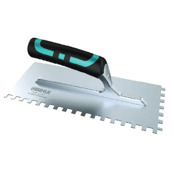 • Nazubljena gleterica BIHUI PTSB je izdržljiv "Heavy Duty" alat dizajniran za efikasno i ravnomerno nanošenje lepka na velike površine. Sečivo od visokokvalitetnog nerđajućeg čelika debljine 0,7 mm garantuje dug vek trajanja i otpornost na koroziju, dok je ergonomska neklizajuća drška pričvršćena sa 8 zavarenih zakivaka za maksimalnu stabilnost i udobnost tokom rada. Gleterica uključuje i izdržljivu šinu dužine 220 mm za dodatnu podršku, a dostupna je u tri veličine zuba (8, 10 i 12 mm), što je čini prilagodljivom različitim tipovima lepka i zahtevima posla. Sa ukupnim dimenzijama od 280×120 mm, alat je idealan za profesionalce u keramičarskim i građevinskim radovima koji zahtevaju preciznost, produktivnost i robusnost.