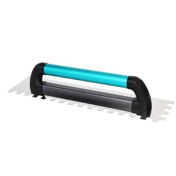 • BIHUI gleterica sa nazubljenim ivicama predstavlja profesionalno rešenje za brzo, ravnomerno i efikasno nanošenje lepka i adheziva na velike površine, idealno za rad sa velikoformatnim pločicama. Sa dimenzijama od 480 × 120 mm i robusnom metalnom drškom dužine 290 mm, alat omogućava rad sa obe ruke, pružajući optimalnu ravnotežu, kontrolu i udobnost tokom dugotrajne upotrebe. Zatvorena, ojačana drška sa 12 zavarenih zakivaka garantuje izdržljivost, dok oštrica od nerđajućeg čelika debljine 0,8 mm obezbeđuje dug vek trajanja i otpornost na koroziju. Gleterica je dostupna u četiri različite veličine zuba (8, 10, 12 i 15 mm), što je čini prilagodljivom različitim tipovima lepka, debljinama nanosa i zahtevima posla. Zahvaljujući većoj radnoj površini, omogućava i do dva puta brže nanošenje mase, značajno ubrzavajući proces postavljanja pločica i povećavajući produktivnost. Neophodan alat za svakog keramičara koji traži preciznost, efikasnost i pouzdanost u svakodnevnom radu.