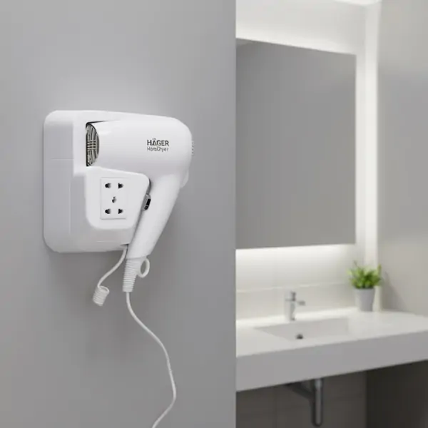 • Naziv proizvoda: Haeger HD-120.006A fen sa držačem za zid i strujnom utičnicom 1200w