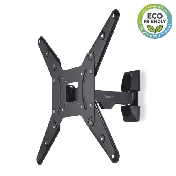 • Hama zidni okretni TV nosač sa jednom rukom namenjen je za ekrane dijagonale od 81 do 165 cm (32" do 65") i maksimalne nosivosti do 20 kg. Nosač podržava sve VESA standarde od 75x75 do 400x400, a udaljenost od zida može se podešavati od 5,6 do 22,2 cm. Omogućava okretanje do 180° i podešavanje nagiba od 5° do -12°, što pruža fleksibilnost u podešavanju optimalnog ugla gledanja. Nosač je opremljen menadžerom kablova, libelom i visokokvalitetnim Fischer setom za jednostavnu i brzu instalaciju. Eco-Friendly dizajn uključuje FSC-sertifikat, što znači da papir i karton u pakovanju potiču iz održivog šumskog gazdovanja, a pakovanje je 100% bez plastike, smanjujući plastični otpad i povećavajući mogućnost recikliranja. Proizvod dolazi sa 10 godina garancije.