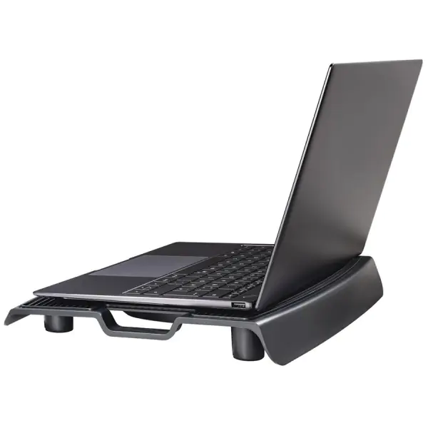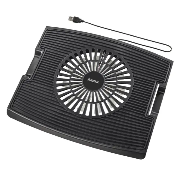 • Hama Wave postolje sa kulerom predstavlja moderno i praktično rešenje za hlađenje laptop računara, idealno za modele dijagonale od 34 do 40 cm (13.3" do 15.6"). Njegov atraktivan crni dizajn sa rebrastom podlogom i plavim LED osvetljenjem daje savremen izgled, dok veliki ventilator prečnika 28 cm obezbeđuje ravnomerno i efikasno hlađenje. Kuler radi veoma tiho, sa svega 23 dBA, što omogućava nesmetan rad, gledanje filmova ili igranje igara. Postolje se napaja putem USB kabla dužine 50 cm, a zahvaljujući gumiranim površinama na dnu stabilno stoji i sprečava klizanje uređaja. Hama Wave je lagan, funkcionalan i idealan za svakodnevnu upotrebu kod kuće, na poslu ili u pokretu.