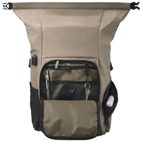 • Poseduje prostranu pregradu za dodatnu opremu i jos jedan dodatni dzep sa prednje strane, USB-A konektor sa skrivenim kablom duzine 90 cm za punjenje uredjaja u pokretu, i traku za postavljanje na putnu torbu/kofer sa unutrasnje strane