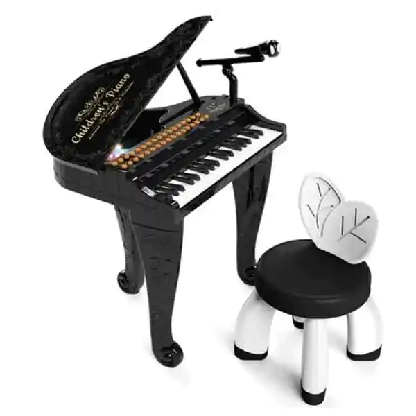 • Dečiji klavir sa stolicom i mikrofonom predstavlja savršen izbor za male muzičare koji žele da zakorače u svet melodija, ritma i zabavnog stvaranja muzike. Ovaj elegantni model, izrađen u kombinaciji crne i bele boje, podseća na pravi koncertni klavir, čineći igru još inspirativnijom. Precizno dizajniran za dečije ruke, pruža mališanima mogućnost da kroz igru razvijaju sluh, motoriku, koordinaciju pokreta i samopouzdanje na sceni.