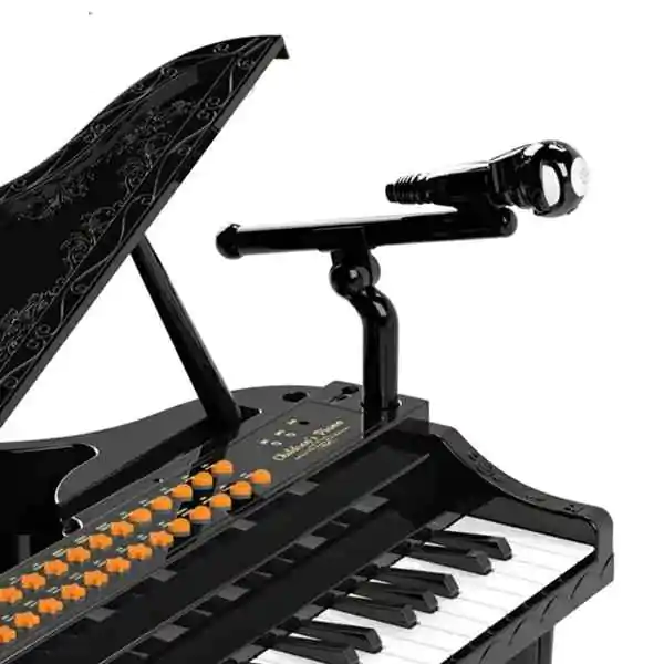 • Klavir poseduje tipke koje verno imitiraju stvaran instrument, pružajući autentičan osećaj sviranja. Dodatna oprema uključuje stabilnu stolicu, koja omogućava detetu udoban položaj tokom nastupa, kao i mikrofon montiran na držač — savršen za male pevače koji žele da uz zvuke klavira pokažu i svoj glasovni talenat. Ovaj set inspiriše decu da istražuju muziku, komponuju prve melodije i izvode svoje mini koncerte za porodicu i prijatelje.