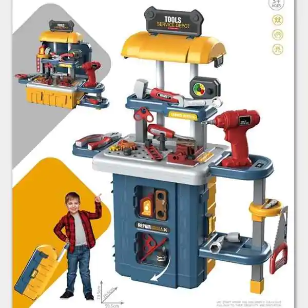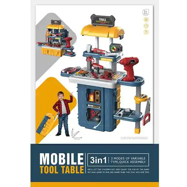 • Dečiji radni sto sa alatom 3-u-1 – kofer, sto i radna klupa sa električnom bušilicom
