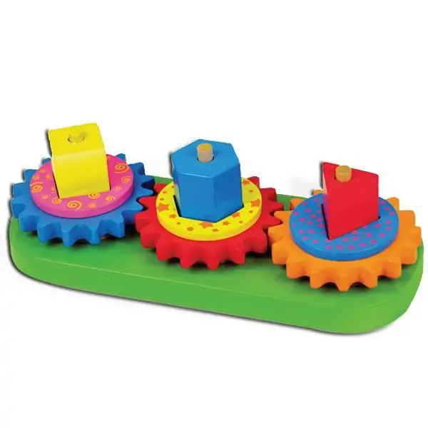 • Drvena multifunkcionalna zupčasta roto umetaljka sastoji se od drvenog postolja sa 9 elemenata za umetanje i sortiranje po obliku i boji (3 geometrijska tela h8cm , 3 kolor prstena sa geometrijskom umetaljkom i 3 zupčanika) i postolje sa tri štapa