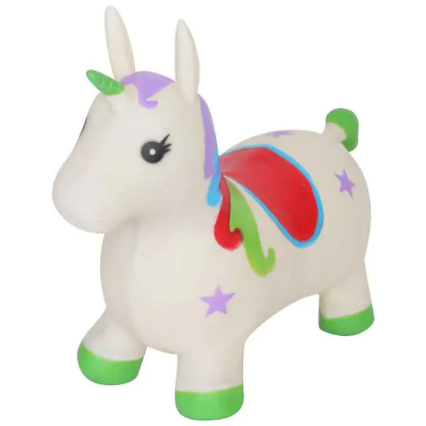 Razigrani jednorog na naduvavanje savršena je igračka za nemirne mališane! Njegove vesele boje i mekani, zaobljeni oblici izmamljuju osmeh i pružaju sate zabave. Dok skače, dete vežba celo telo i uči održavanje ravnoteže kroz igru. Ergonomski dizajn sa ušima koje služe kao sigurne ručke pruža dodatnu stabilnost. Lagan, ali izdržljiv, idealan je za igru u kući ili na otvorenom. Zahvaljujući mekom materijalu, igra je sigurna, a naduvavanje i spremanje izuzetno jednostavno. Ovaj šareni jednorog brzo će postati omiljena igračka vašeg deteta!