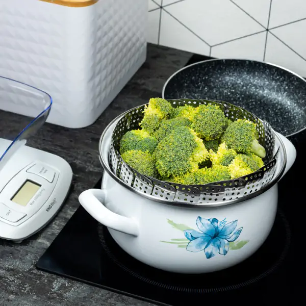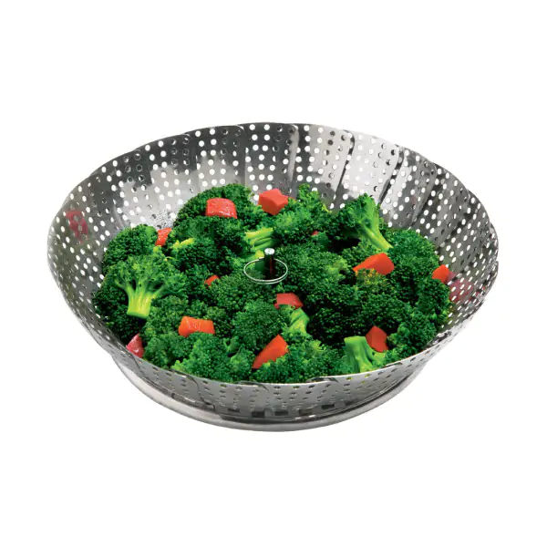 • Stimer za kuvanje, sa promenom od 28 cm, predstavlja praktično i zdravstveno svestran rešenje za vašu kuhinju. Njegova genijalna konstrukcija omogućava kompaktno sklapanje za jednostavno skladištenje, dok se fleksibilne, samopodešavajuće strane lako prilagođavaju većini šerpa, tiganja i ekspres lonaca, garantujući stabilnost tokom kuvanja. Zahvaljujući tehnologiji kuvanja na pari, ovaj parnik čuva prirodne arome i nutritivne vitamine u hrani, istovremeno skraćujući vreme kuvanja i sprečavajući pripajanje ili sagorevanje jela. Jedinstveni dizajn omogućava da se parnik koristi ne samo za kuvanje već i kao poslužavnik za serviranje, eliminišući potrebu za prebacivanjem povrća i čuvajući njegovu svežinu i izgled. Savršen izbor za zdravo i efikasno kuvanje, ovaj parnik unapređuje svakodnevni kulinarski ritam uz maksimalnu praktičnost.