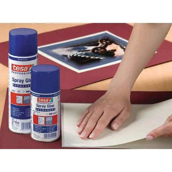 • Lepak u Speju Permanenti Tesa® je lepak u spreju namenjen za velike površine. Pruža izuzetno snažno prijanjanje za tipične materijale u domaćinstvu, kao što su papir ili karton.