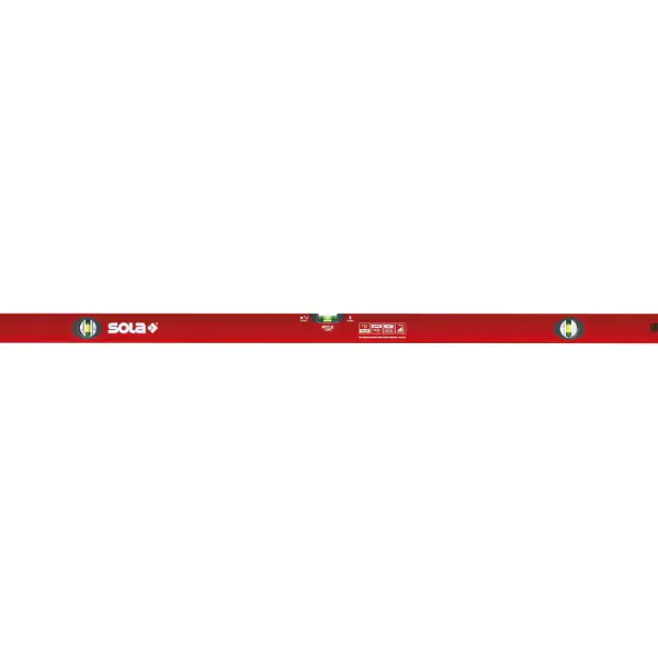 • SOLA BIG X 3 je visokoprecizna profesionalna libela sa tri ugradene bočice – dve vertikalne i jedna horizontalna – dizajnirana za zahtevne građevinske i zidarske radove. Izrađena je od torziono krutog aluminijumskog profila preseka 52×25 mm, sa težinom od 630 g/m, obojenog crvenom epoksidnom bojom radi povećane vidljivosti i zaštite od korozije. Sve tri bočice koriste patentirani SOLA FOCUS dizajn sa uveličavajućim sočivom (+60%) i optimizovanom svetlećom podlogom, što omogućava izuzetno brzo, jasno i precizno očitavanje čak i pri slabom osvetljenju. Akrilne bočice su otporne na lomljenje i imaju 30-godišnju garanciju protiv curenja. Libela poseduje dvodelne završne kapice koje apsorbuju udarce i štite profil od oštećenja. Sa tolerancijom merenja od 0,50 mm/m (0,029°) u standardnom i 0,75 mm/m (0,043°) u obrnutom položaju, SOLA BIG X 3 garantuje visoku tačnost kako za horizontalna tako i za vertikalna merenja, čineći je neophodnim alatom za profesionalce koji traže pouzdanost, izdržljivost i vrhunsku preciznost.