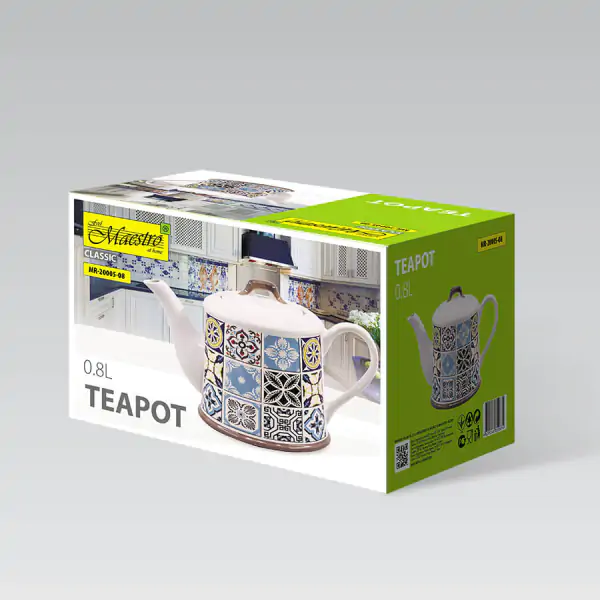 • Čajnik MR-20005-08, sa svojim kapacitetom od 800 ml, predstavlja savršeno objedinjenje funkcionalnosti i suvremene elegancije. Izrađen od visokokvalitetne, ekološki prihvatljive i hemijski neutralne keramike, ovaj čajnik garantuje da će puni i čisti ukus vašeg čaja ostati očuvan, bez ikakvih stranih mirisa ili naknadnih prizvuka. Njegov moderan i profinjen dizajn lako se uklapa u bilo koji ambijent, od klasičnog do minimalističkog, dok su ergonomski dizajnirani drška i precizan izliv osmišljeni za intuitivnu upotrebu i nesmetano serviranje. Više od obične posude, MR-20005-08 je izraz ličnog stila i pažnje prema detaljima, koji svakodnevni ritual pretvara u trenutak čistog uživanja i estetskog zadovoljstva.