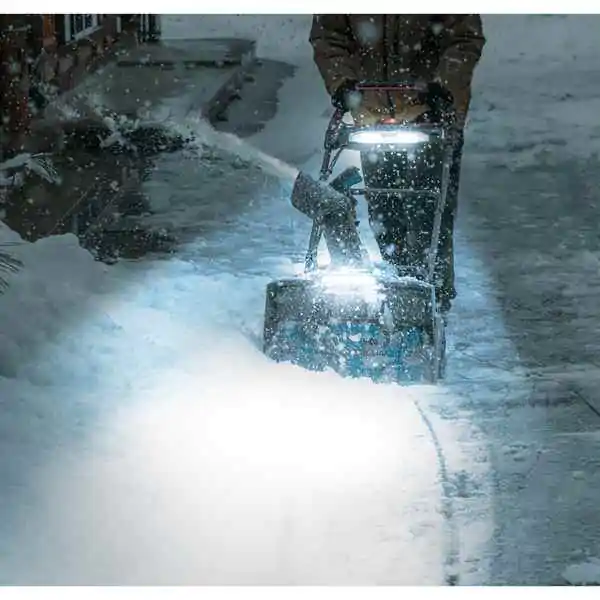 • Izbacivanje snega je moguće na udaljenost do 10 metara, dok se pravac i visina izbacivanja precizno podešavaju pomoću deflektora na vrhu izbacne cevi. Ugrađeno LED osvetljenje omogućava siguran i precizan rad u uslovima slabije vidljivosti, poput ranih jutarnjih ili večernjih sati.