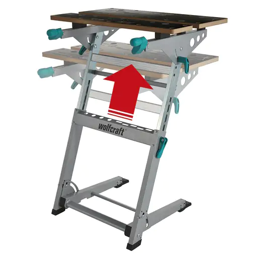 • Radna ploča od kvalitetnog MDF materijala debljine 19 mm omogućava sigurno i stabilno pozicioniranje radnih komada. Zahvaljujući mogućnosti nagiba od 0 do 70 stepeni, sto je idealan za rad sa ger testerama ili stalcima za bušilice. Funkcija stezanja omogućava čvrsto fiksiranje materijala, sa maksimalnom širinom stezanja do 13 cm, dok dodatne čeljusti omogućavaju proširenje do čak 43,5 cm.