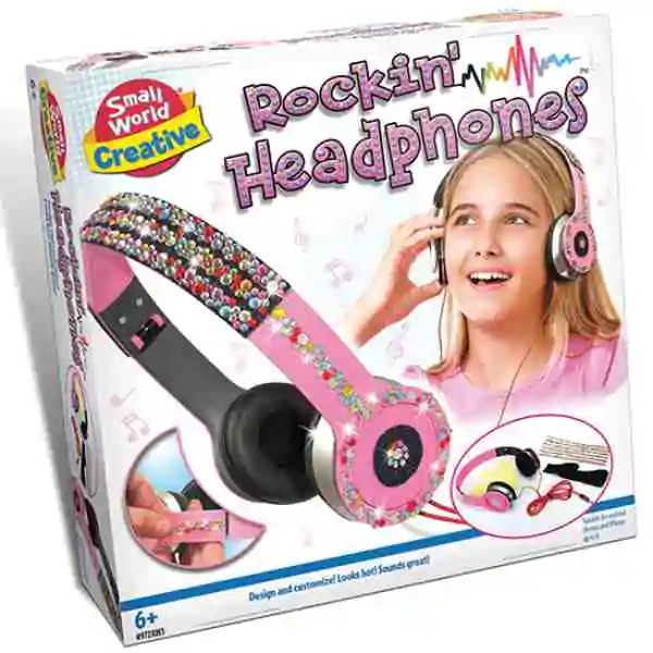 • Kreativni set koji sadrži slušalice koje se mogu ukrašavati uz pomoć različitih vrsta cirkona i traka