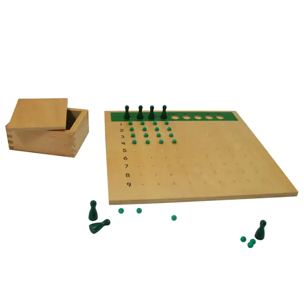 • Set sadrži drvenu tablu, sa obeleženim brojevima od 1 do 9, 9 drvenih pijuna u kutiji, zelenu posudu i kutiju sa 81 perlicom.