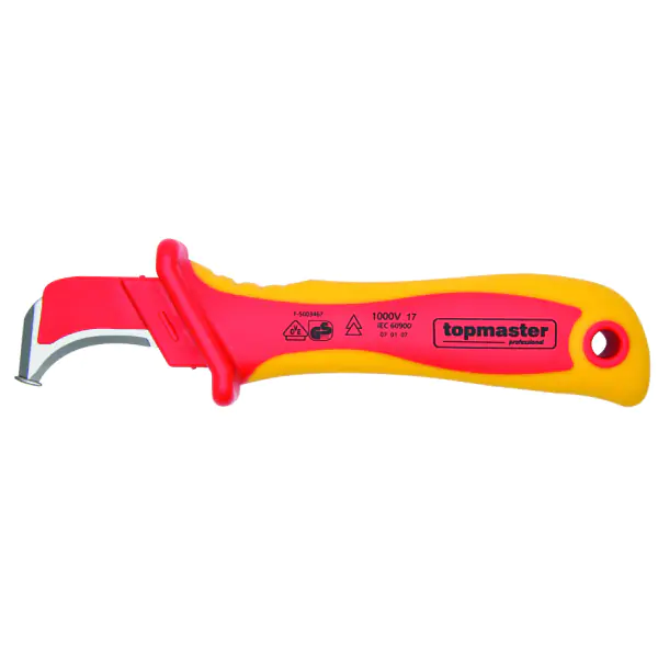 • TMP nož za skidanje izolacije treće generacije, dužine 190 mm, predstavlja profesionalni alat dizajniran za precizno i bezbedno skidanje spoljne izolacije sa kablova svih vrsta. Opremljen stabilnim fiksnim sečivom u obliku kuke, omogućava čist i kontrolisan rez bez rizika od oštećenja unutrašnjih provodnika i njihove izolacije – čak i pri radu sa osetljivim instalacijama. Bezbednosni savet na vrhu alata dodatno povećava sigurnost tokom rada, sprečavajući slučajne povrede i omogućavajući bezbrižno rukovanje. Izrađen od kvalitetnih materijala, nož garantuje dugotrajan rad i pouzdanost u svakodnevnoj profesionalnoj upotrebi. TMP nož je idealan izbor za električare, instalatere i servisere kojima je potrebna preciznost, bezbednost i izdržljivost na prvom mestu.