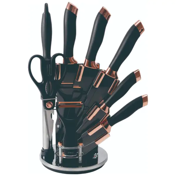 OV51633K9G kompletan set kuhinjskih noževa na elegantnom stalku predstavlja savršen spoj funkcionalnosti i estetike, idealan za sve ljubitelje ...
