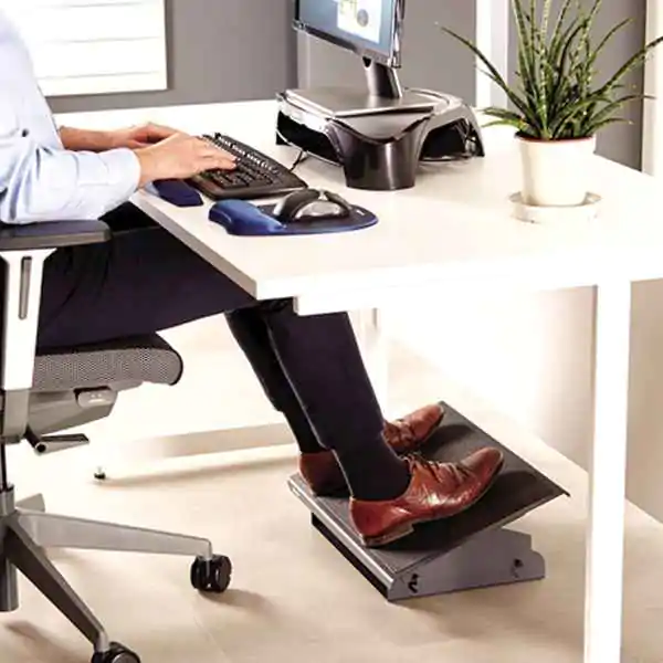 • Ergonomski odmarač za noge Professional Heavy Duty Fellowes predstavlja idealno rešenje za udoban i zdrav rad u kancelariji ili kod kuće. Ovaj kvalitetan kancelarijski odmarač za noge dizajniran je da poboljša ergonomiju sedenja, smanji opterećenje na nogama i donjem delu leđa, kao i da podstakne pravilno držanje tela tokom dugotrajnog rada za računarom.