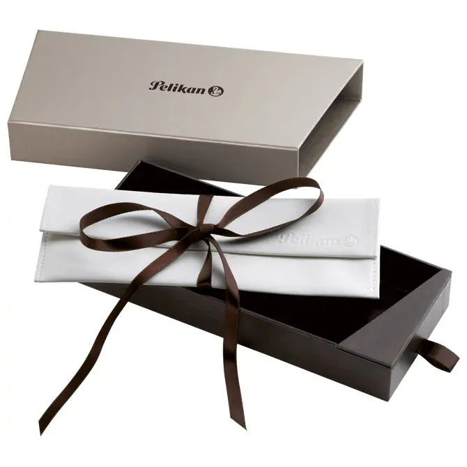 • Pelikan Classic K200 hemijska olovka u zeleno-crnoj kombinaciji izrađena je od visokokvalitetne smole visokog sjaja, pružajući elegantan i izdržljiv dizajn karakterističan za Pelikan klasiku. Klips i dekorativni prstenovi presvučeni su 24-karatnim zlatom, naglašavajući luksuzni karakter olovke. Pritisni mehanizam omogućava jednostavno i pouzdano korišćenje, dok crni uložak 337M širine linije 1,0 mm obezbeđuje precizno pisanje. Isporučuje se u poklon kutiji sa kožnom belom futrolom G30.