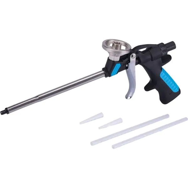 • Pištolj omogućava finu kontrolu protoka pene, čime se smanjuje potrošnja materijala i postiže uredniji završni rezultat. Navoj je obložen teflonom, što olakšava čišćenje i sprečava lepljenje ostataka pene. Teflonski loptasti ventil dodatno doprinosi pouzdanom zaptivanju i dugotrajnom radu bez curenja.