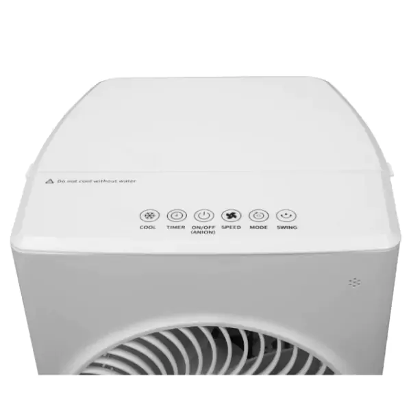 • Ovaj moderan i kompaktan uređaj idealno je rešenje za efikasno osvežavanje prostora tokom toplih dana, kombinujući tri ključne funkcije u jednom – snažan ventilator, efikasan isparivač vode i jonizator vazduha za maksimalnu udobnost i poboljšan kvalitet vazduha. Belog, elegantnog dizajna, lako se uklapa u svaki enterijer, dok ugrađeno ambijentalno osvetljenje omogućava promenu boje i prilagođavanje atmosfere prema želji korisnika. Tri brzine ventilatora (F1 – sporo, F2 – srednje, F3 – brzo) i tri režima rada (normalni, prirodni vetar i noćni režim) omogućavaju precizno prilagođavanje intenziteta i karaktera strujanja vazduha. Funkcija oscilacije (SWING) obezbeđuje ravnomernu distribuciju vazduha levo-desno, dok tajmer podesiv od 1 do 12 sati omogućava programiranje rada prema potrebama. Jonizator vazduha, automatski aktivan pri svakom pokretanju, neutrališe štetne čestice i poboljšava kvalitet vazduha u prostoriji. Upravljanje je jednostavno i udobno zahvaljujući daljinskom upravljaču.