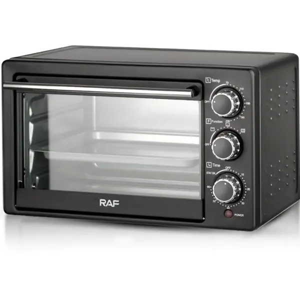 • Raf mini pećnica model R.5321 zapremine 22 litra i snage 1200 W predstavlja svestrano i praktično rešenje za svakodnevnu pripremu obroka, kombinujući dovoljno prostora sa snažnim performansama u elegantnom crnom dizajnu. Opremljena je kontrolom temperature u rasponu od 80 do 230 °C i tajmerom do 60 minuta, što omogućava precizno podešavanje i ravnomerno pečenje peciva, mesa, povrća ili brzo zagrevanje hrane. Kompaktnih dimenzija 43 x 33 x 31 cm i kabla dužine 0,95 m, ova pećnica se lako uklapa u svaki kuhinjski prostor, a uz kompletni pribor koji uključuje pleh za pečenje, rešetku za pečenje i pleh za roštilj, pruža širok spektar mogućnosti za kreativno kuvanje. Ova mini pećnica je idealan izbor za sve koji traže spoj funkcionalnosti, kontrole i modernog dizajna u svakodnevnoj upotrebi.