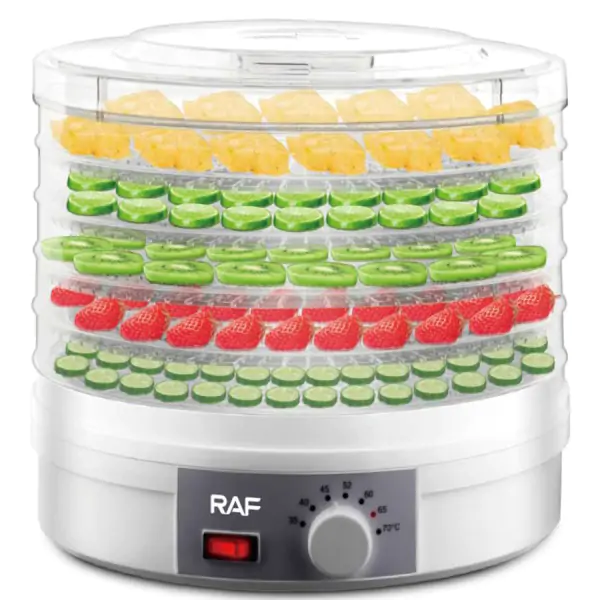 • RAF R.6800 dehidrator hrane predstavlja praktičan i efikasan uređaj za sve koji žele da na prirodan način sačuvaju namirnice duže vreme, bez dodavanja konzervansa, šećera ili veštačkih aditiva. Sušenje hrane je jedan od najstarijih i najzdravijih načina očuvanja nutritivne vrednosti voća, povrća, pečuraka, bilja i mesa, a ovaj dehidrator omogućava jednostavnu upotrebu u kućnim uslovima uz minimalnu potrošnju energije.