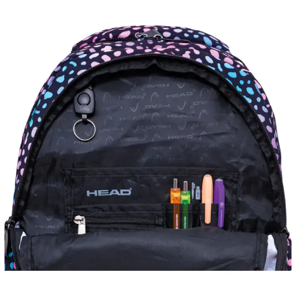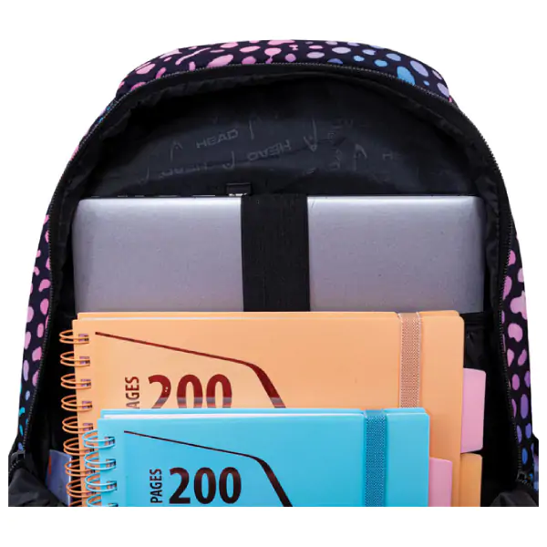 • Head đački anatomski ranac model Gemstone Element AB200 24./25.Head 502024132 u crno-roze kombinaciji predstavlja savršen spoj funkcionalnosti, ergonomije i modernog urbanog dizajna, idealan za školske obaveze, svakodnevne aktivnosti i sigurno nošenje laptopa. Izrađen je od 100% poliestera sa vodootpornim svojstvima, čime se obezbeđuje zaštita sadržaja od vlage i dugotrajnost. Ergonomski oblikovan leđni deo omogućava optimalan protok vazduha, smanjujući znojenje i povećavajući udobnost tokom dužeg nošenja, dok anatomski oblikovane naramenice sa kaiševima za podešavanje ravnomerno raspoređuju teret na ramena. Ojačana ručka za nošenje pruža siguran i udoban hvat pri ručnom nošenju. Ranac poseduje tri glavne pregrade sa zatvaranjem na zip, jedan džep na zip na prednjoj strani i bočne džepove za brz pristup stvarima. U prednjem delu nalaze se pregrade za pribor, telefon i privezak za ključeve, omogućavajući preglednu organizaciju. Snažno reflektujući sigurnosni delovi povećavaju vidljivost u uslovima slabog osvetljenja. Dimenzija 32 x 44 x 19 cm čini ga prostranim i praktičnim za svakodnevnu upotrebu.
