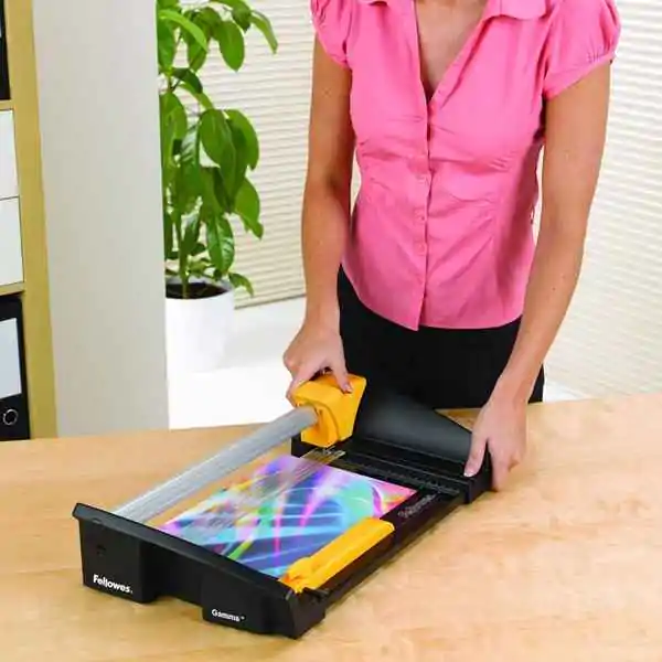 • Rezač za papir Gamma A4 Fellowes predstavlja praktičan i precizan alat za sečenje dokumenata u kancelarijama, školama, štamparijama i kreativnim radionicama. Ovaj kvalitetan kancelarijski rezač za papir dizajniran je za čestu upotrebu i omogućava brzo, ravno i bezbedno sečenje različitih vrsta materijala poput papira, fotografija, prezentacija ili promotivnih materijala.