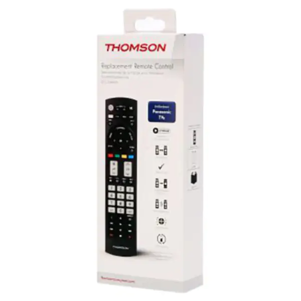 • Thomson ROC1128PAN je zamenski daljinski upravljač dizajniran za Panasonic televizore, pružajući praktično i jednostavno korišćenje. Poseduje većinu kodova za Panasonic TV modele, omogućavajući momentalno povezivanje, kao i dodatno podešavanje za manje poznate modele. Ovaj univerzalni 1:1 daljinac koristi infra-red tehnologiju i uključuje sve funkcije originalnog Panasonic daljinca. Poseduje jednostavan režim rada, što ga čini pogodnim za starije osobe, hotele i druge korisnike kojima je potrebna jednostavnost. Daljinski upravljač omogućava učenje dodatnih funkcija, ima LED lampicu za lakše korišćenje u mraku, i ukupno 56 tastera, pri čemu glavni tasteri svetle radi bolje preglednosti. Napaja se sa dve AAA Micro baterije i ima domet do 10 metara, što omogućava pouzdanu kontrolu televizora iz različitih delova prostorije. Izrađen je od plastike, dimenzija 214 x 50 x 23 mm, mase 83 g i u crnoj boji, što mu daje elegantan i praktičan izgled, pogodan za svakodnevnu upotrebu u kući ili poslovnom prostoru.