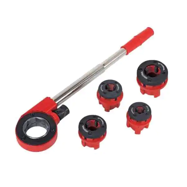 • Ručna nareznica omogućava izradu BSPT desnih navoja na cevima od čelika, mesinga i drugih metala, u dimenzijama 1/2", 3/4", 1" i 1 1/4". Zahvaljujući visokokvalitetnim noževima, navoj se formira glatko i precizno, bez oštećenja materijala. Napredne komore za izbacivanje strugotine omogućavaju brže sečenje i sprečavaju zagušenje alata tokom rada, što dodatno povećava efikasnost.