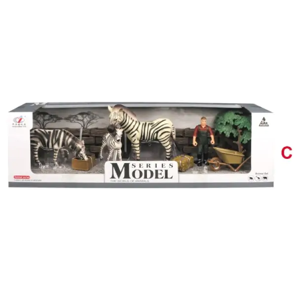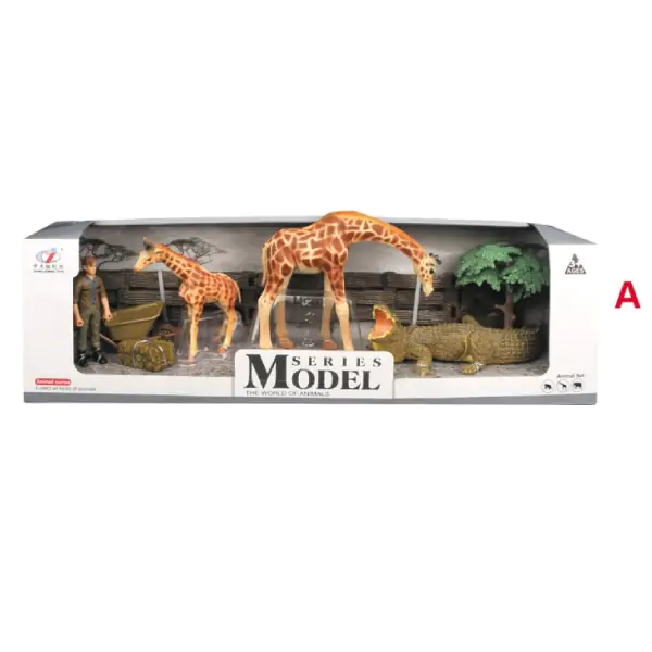 • Setovi divljih životinja – Žirafe u savani, Porodica slonova i Zebre na pašnjaku – predstavljaju realistično izrađene edukativne igračke koje deci omogućavaju da kreiraju autentične scene iz afričke prirode i razvijaju maštu, empatiju i ljubav prema životinjama. Svaki set sadrži figuru čoveka koji se brine o životinjama, kolica sa balama sena, drvo i ogradu za stvaranje okruženja i osmišljavanje priča po želji deteta.
