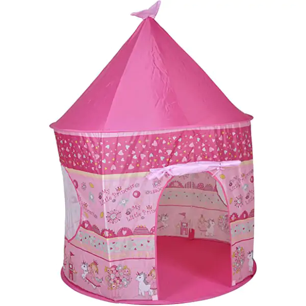 Ovaj šator za decu donosi magiju i zabavu u svaku sobu ili dvorište. Ukrašen je roze motivima princeza, jednoroga i cvetića, stvarajući bajkovitu atmosferu za igru i maštovite avanture.